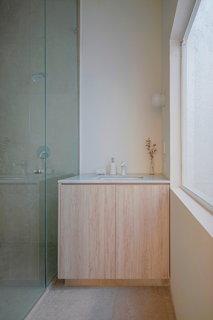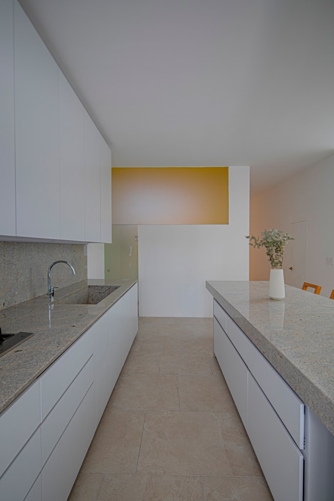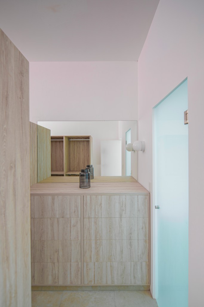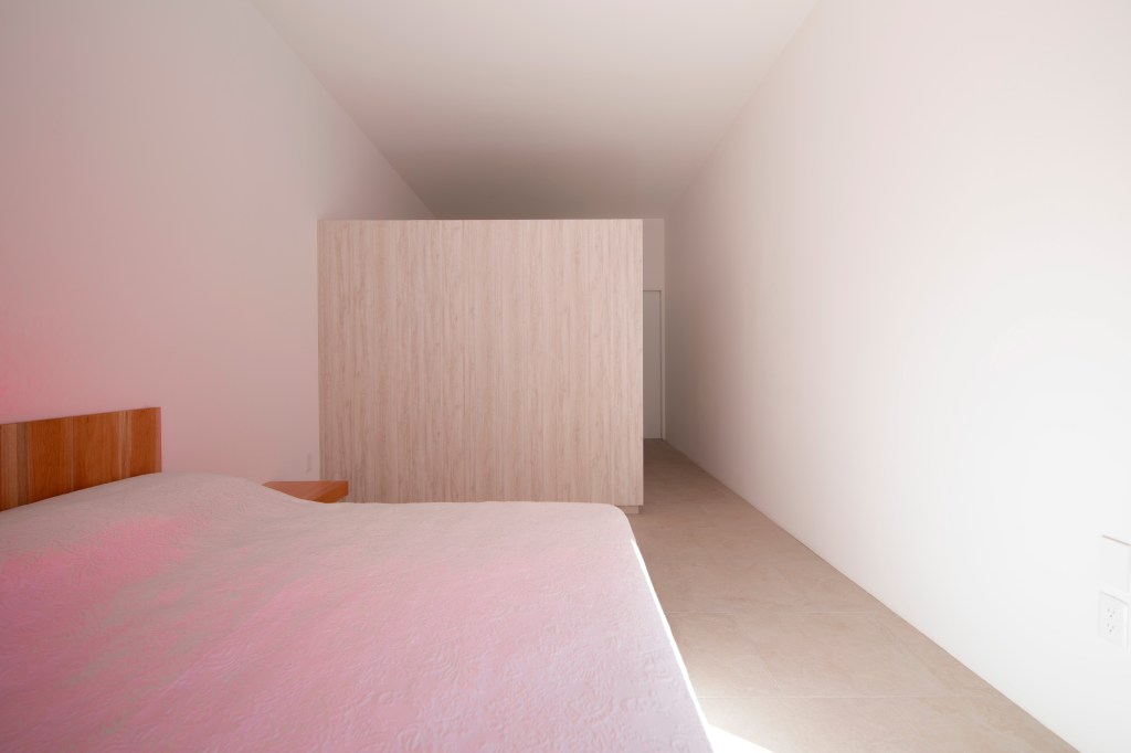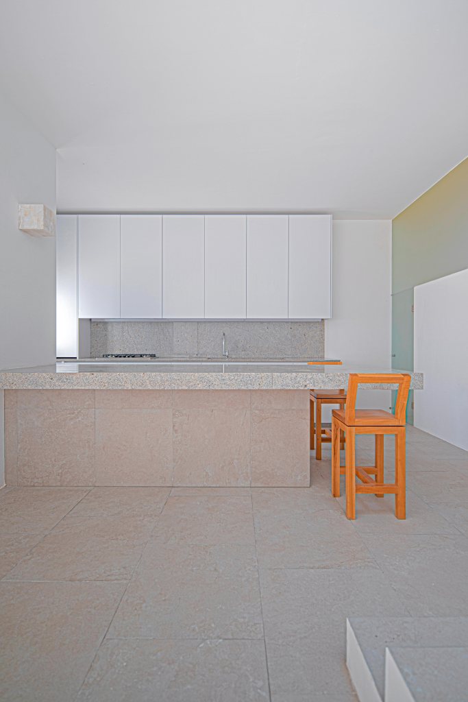 Casa 13O, siete metros de frente, el terreno común de mi país México, pequeño para la mayoría, nuevamente el muro sin ventanas hace la fachada, En esta casa encuentras la paz que todos buscan, cada espacio crea ilusiones. No invento nada, solo descubrí. La Arquitectura se dibuja con poesía, las líneas son secundarias. Con sus tres patios vive la casa, uno de ellos, muy especial por su color rosa, pues el color es para quien lo encuentra. En la habitación rosa se ve la silla mexicana en acero y tela que parece que vuela el asiento.