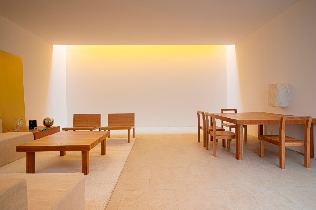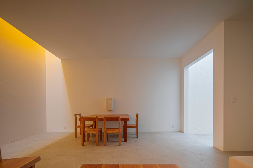 Quien controla la luz domina el universo, la luz natural atmosférica pinta de amarillo la sala comedor. Regresa el esperado cuadro dorado, homenaje al astro Rey, con su amarillo escondido. En la sala, una silla llamada “mexicana” de madera inclinada da confort, todos los muebles son creados por el compositor. Homenaje a los muertos, por sus sabias enseñanzas. QUETZALCOATL compositor arquitectónico